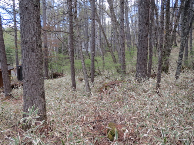 緩やかな北西斜面の地勢土地となります。 木漏れ日の中余裕のある別荘ライフ等に… 【標高 約1604m】 |
