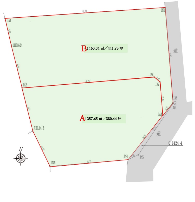 | 土地面積 | 1,257㎡/380~坪 | 接道 | 公道(村道:南東側接道 未舗装にて砂利敷き) |